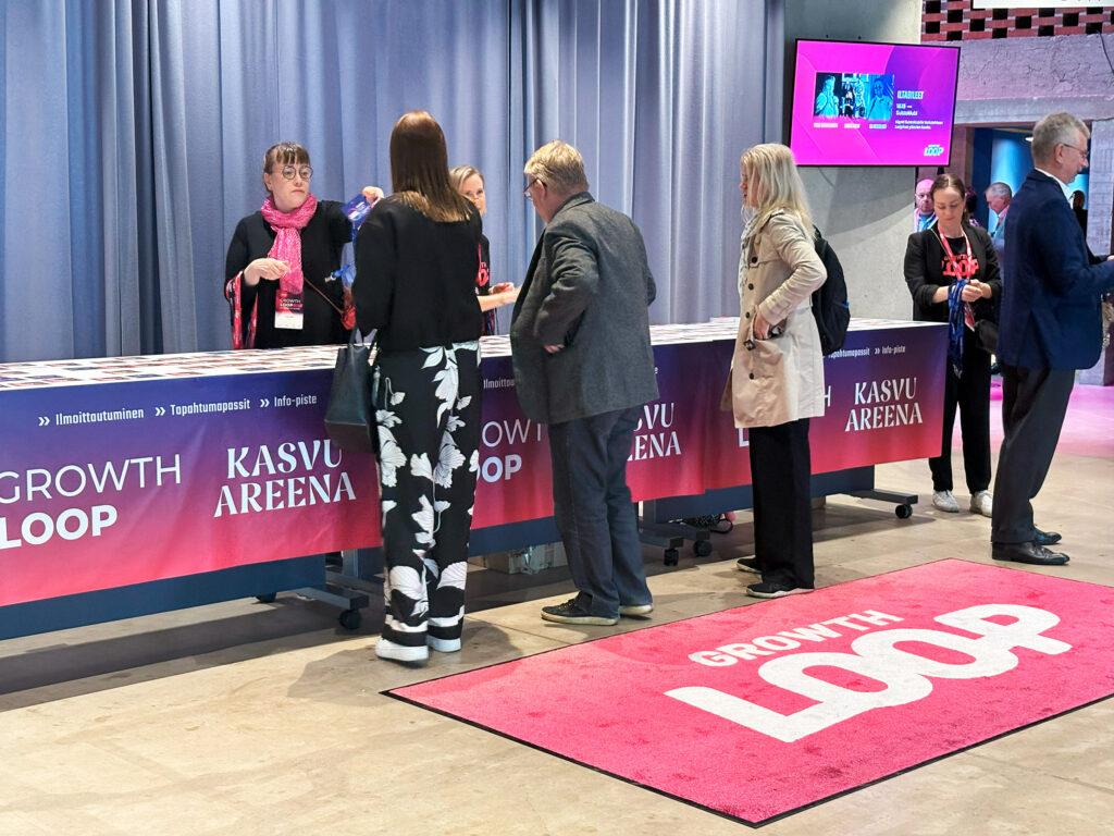 Kuvassa vuoden 2025 Growth Loop -tapahtuman aula, jonne toteutimme messumatot, tapahtumapassit ja paljon muuta!