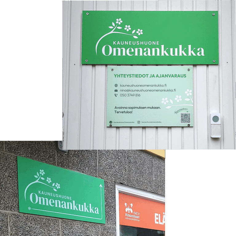 Säätä kestävä alumiinikomposiitti pitää brändisi nimen ja opasteet näkyvillä pitkään ja luotettavasti.
